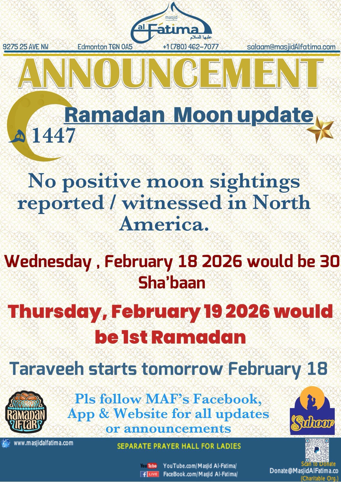 Masjid Al Fatima, an Ahle Sunnah Mosque is located on the South side of Edmonton, Alberta. The conceptualization of the Masjid started as early as 1995 by the Founder and Chairman-Syed Riazuddin Ahmed to cater the needs of Muslim community in Edmonton. Subsequently a land was purchased in the year 2000 and the project started in the year 2014.